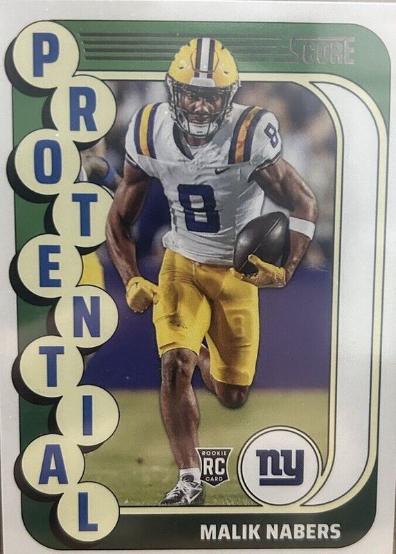 The Malik Nabers 2024 Score #4 Protential - Red Rookie card in Raw condition has not changed in price in the last 30 days and was last sold for $1.25 .