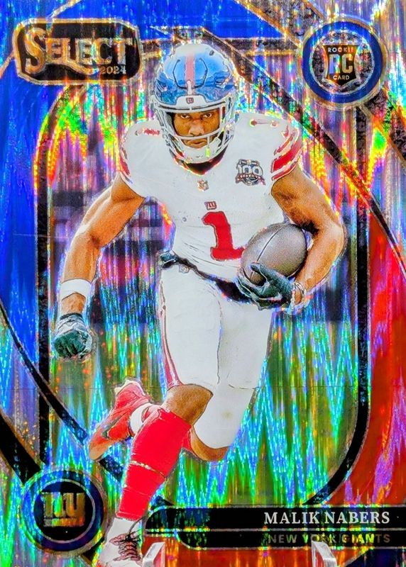 The Malik Nabers 2024 Select #220 Club Level Red & Blue Shock Rookie card in Raw condition has moved up $0.44 (+28.6%) in the last 30 days and was last sold for $2.00 .