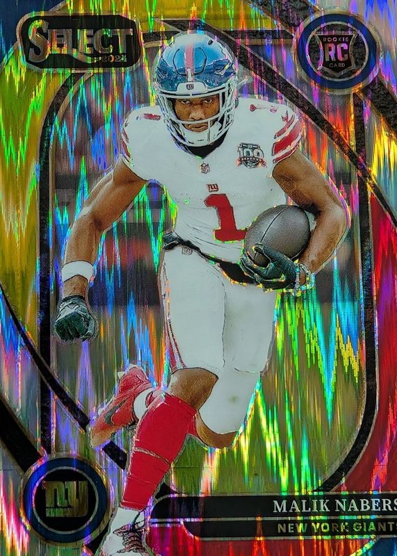 The Malik Nabers 2024 Select #220 Club Level Red & Yellow Shock Rookie card in Raw condition has moved down -$1.37 (-45.7%) in the last 30 days and was last sold for $1.63 .