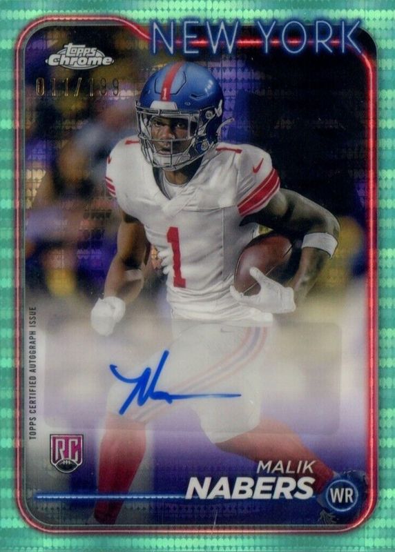 2024 Topps Chrome #RA-MNA Malik Nabers Rookie Auto Aqua Sonar /199 NY GIANTS