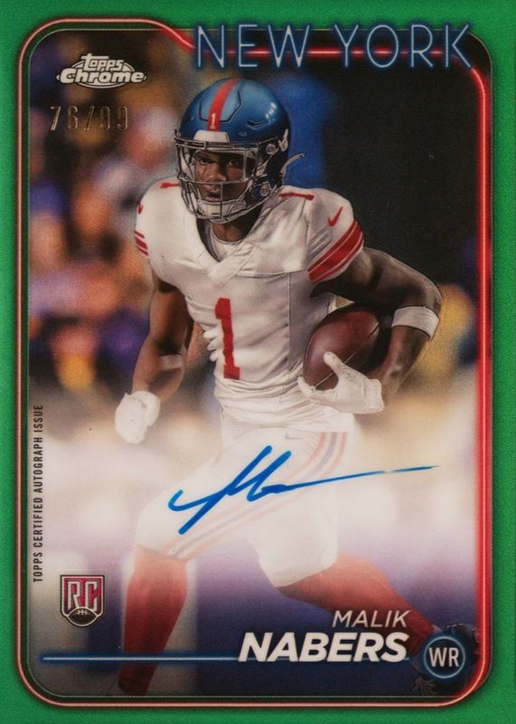 Malik Nabers 2024 Topps Chrome #RA-MNA Rookie Auto - Green Refractor /99 RAW Price Guide
