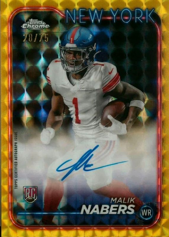 Malik Nabers 2024 Topps Chrome #RA-MNA Rookie Auto - Yellow Geometric Refractor /75 RAW Price Guide