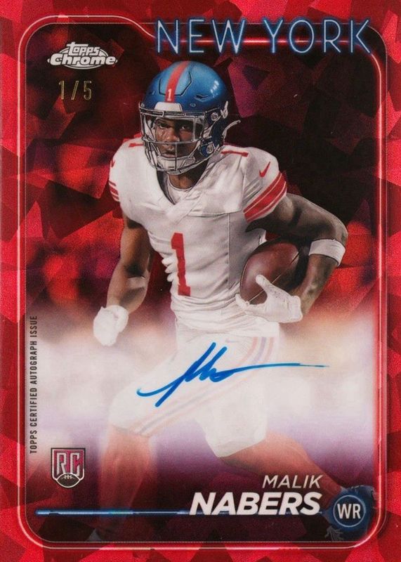 Malik Nabers 2024 Topps Chrome Sapphire Edition #RA-MNA Rookie Autographs - Red /5 RAW Price Guide