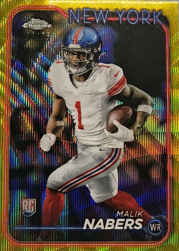Malik Nabers 2024 Topps Chrome #205 Yellow Wave Refractor /75 Rookie RAW Price Guide