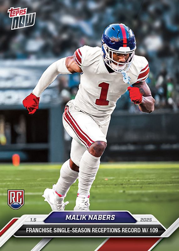 The Malik Nabers 2024 Topps Now #21 Base (Print Run: 1,540) Rookie card in Raw condition has not changed in price in the last 30 days and was last sold for $0.99 .