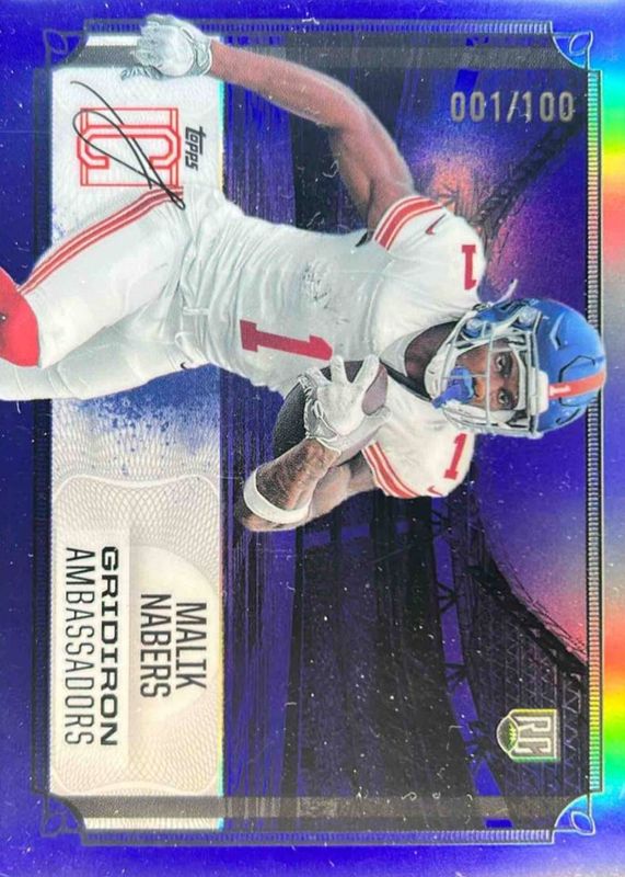 Malik Nabers 2024 Topps Signature Class #GA-6 Gridiron Ambassadors - Purple /100 Rookie RAW Price Guide