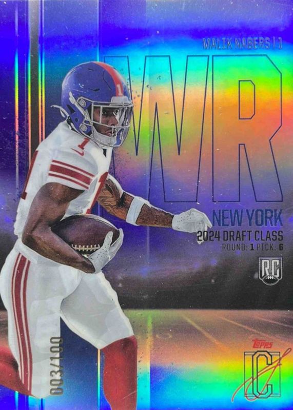 2024 Topps Signature Class Malik Nabers RC Chrome Variation Purple 3/100 Giants