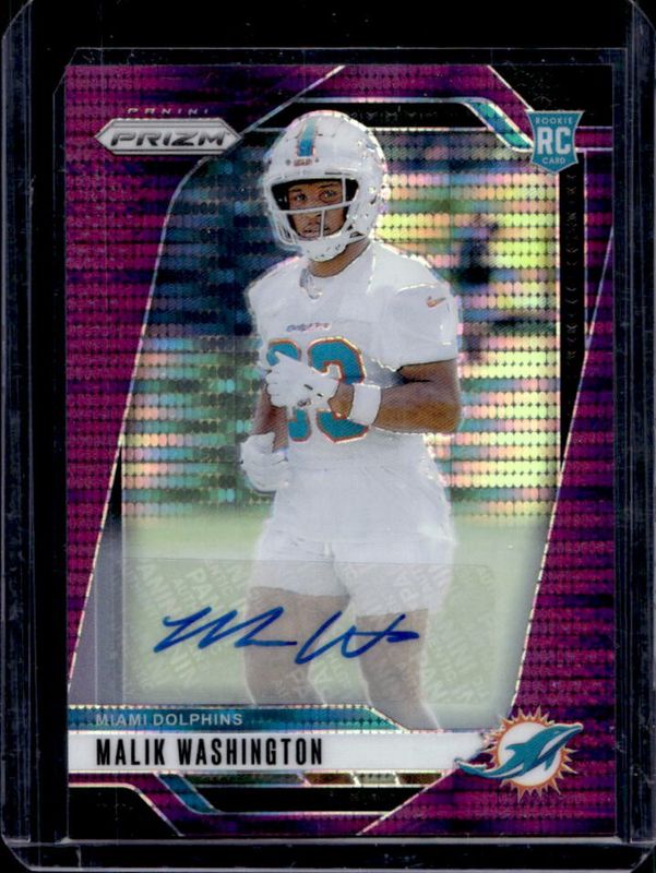 The Malik Washington 2024 Prizm #371 Base Autographs - Purple Pulsar Rookie card is 1 of 84 Malik Washington's card variations in the 2024 Prizm set being tracked by Sports Card Investor, including Base, Choice Blue Yellow Green, Choice Silver, Disco, and Green.