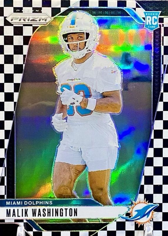 Malik Washington 2024 Prizm Checkerboard #371 Black White Checker RC Dolphins