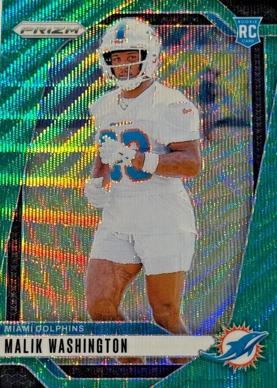 2024 Panini Prizm GREEN WAVE Malik Washington ROOKIE #371 - Miami Dolphins