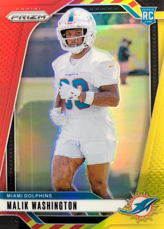 2024 Panini Prizm NFL #371 Malik Washington Red & Yellow Prizm /44 RC Dolphins