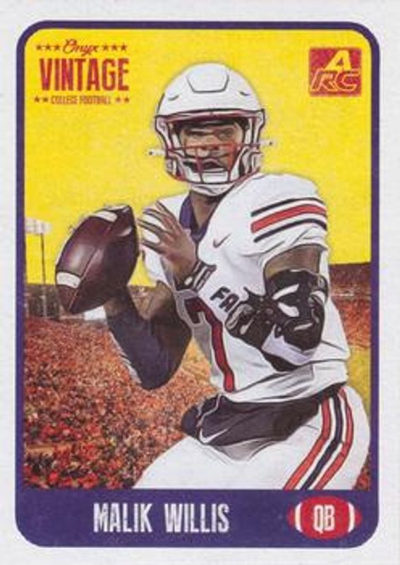 Malik Willis 2021 Onyx Vintage College Football #CFMW Base RAW Price Guide