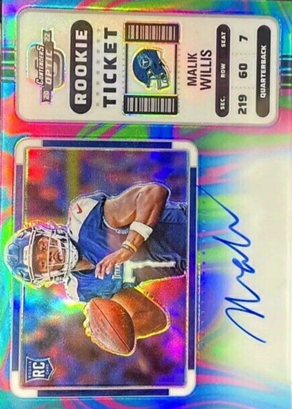 Malik Willis 2022 Contenders Optic #129 Rookie Ticket Auto - Neon Marble /4 RAW Price Guide