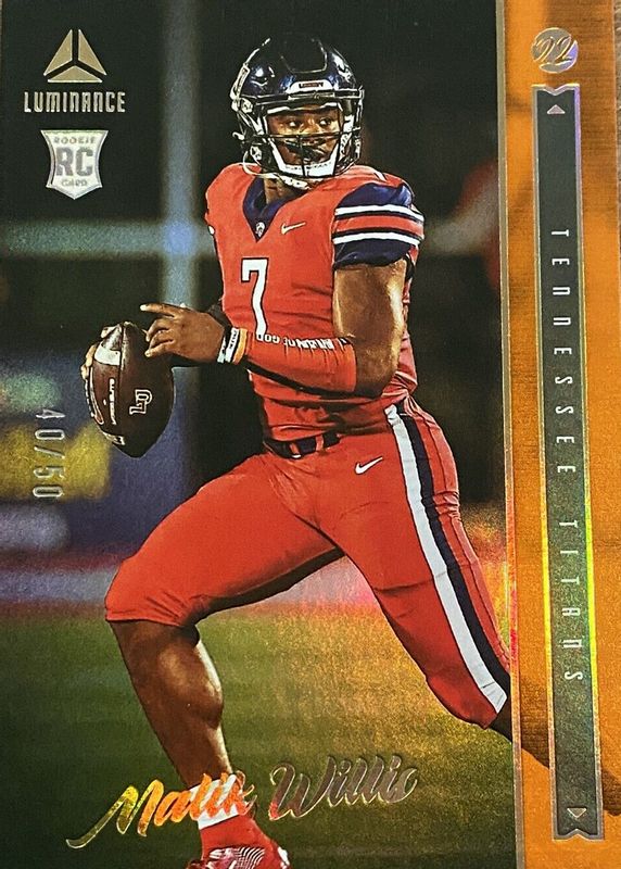 This card is 1 of 9 Malik Willis' card variations in the 2022 Luminance set being tracked by Sports Card Investor, including Base, Gold /249, Blue /149, Green /99, and Teal /35.