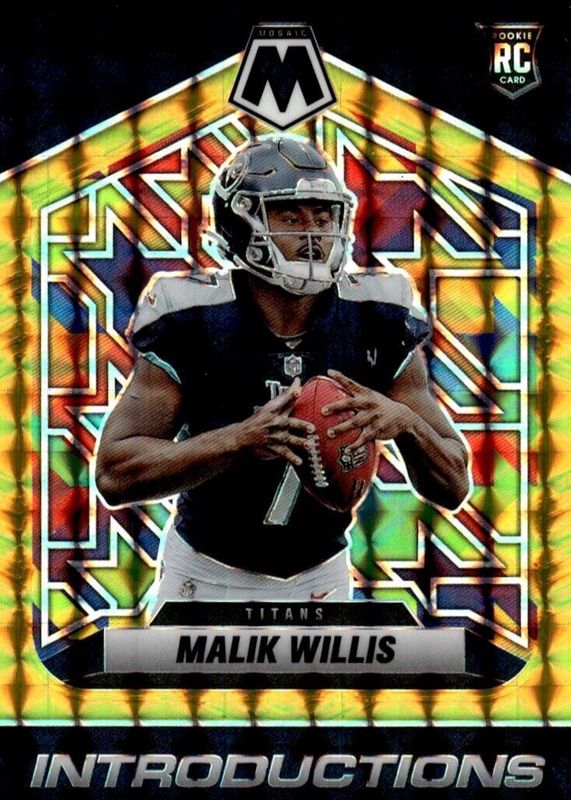 The Malik Willis 2022 Mosaic #I-3 Introductions - Gold /10 Rookie card in Raw condition has not changed in price in the last 30 days and was last sold for $59.99 .