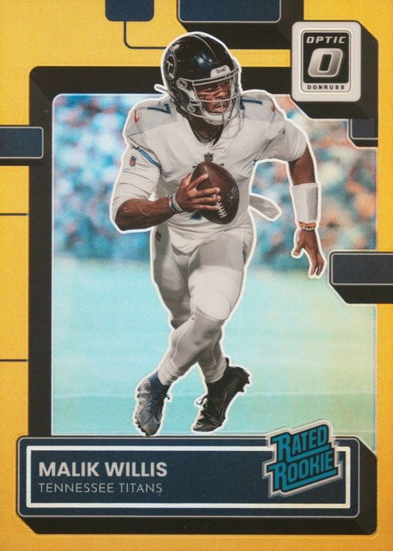 This card is 1 of 96 Malik Willis' card variations in the 2022 Optic set being tracked by Sports Card Investor, including Base, Holo, Holo Variation, Pink, and Purple Shock.