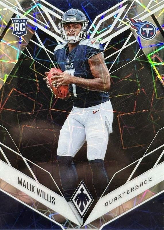 The Malik Willis 2022 Phoenix #103 Black Lazer /10 Rookie card in Raw condition has not changed in price in the last 30 days and was last sold for $14.99 .