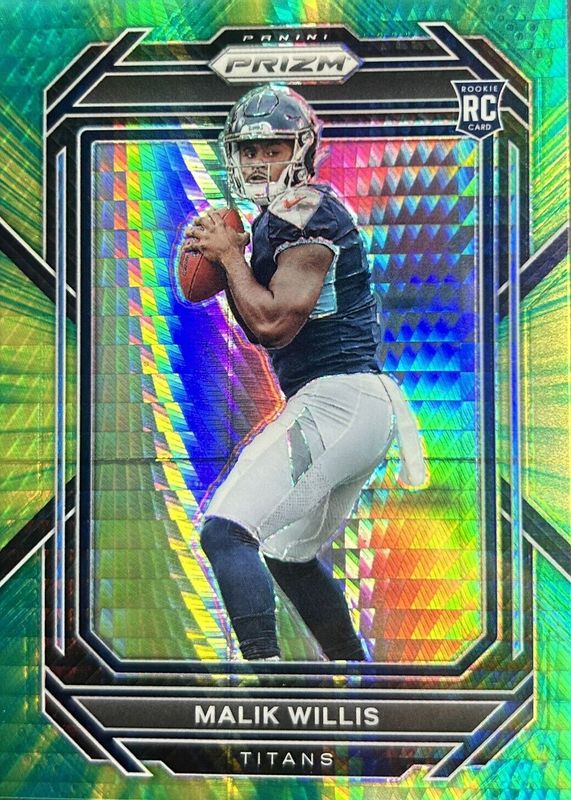 The Malik Willis 2022 Prizm #303 Hyper /175 Rookie card in Raw condition has moved up $6.61 (+10.8%) in the last 30 days and was last sold for $67.61 .