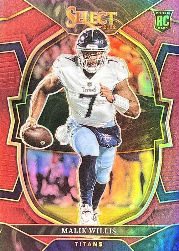 The Malik Willis 2022 Select #38 Concourse Maroon /149 Rookie card in Raw condition has moved up $2.00 (+15.4%) in the last 30 days and was last sold for $15.00 .