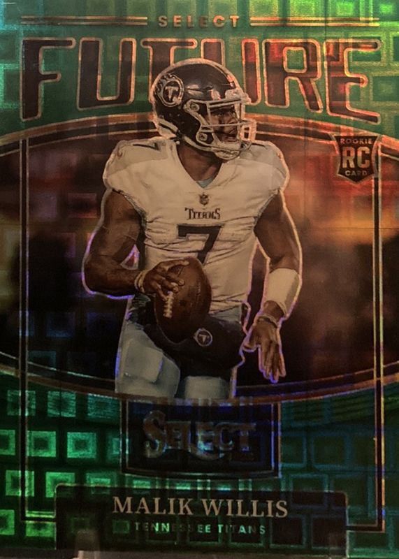 The Malik Willis 2022 Select #SF- 2 Select Future - Green /5 Rookie card in Raw condition has not changed in price in the last 30 days and was last sold for $42.00 .