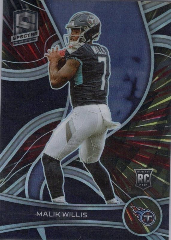 This card is 1 of 57 Malik Willis' card variations in the 2022 Spectra set being tracked by Sports Card Investor, including Base, Silver, Celestial /99, Interstellar /60, and Neon Blue Die-Cut /50.