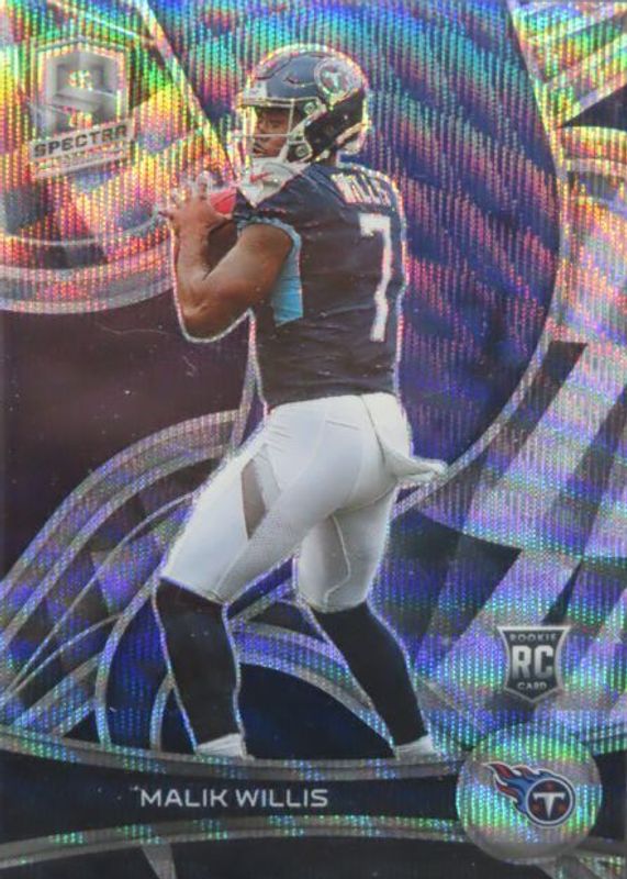 The Malik Willis 2022 Spectra #138 Wave /11 Rookie card in Raw condition has not changed in price in the last 30 days and was last sold for $14.82 .