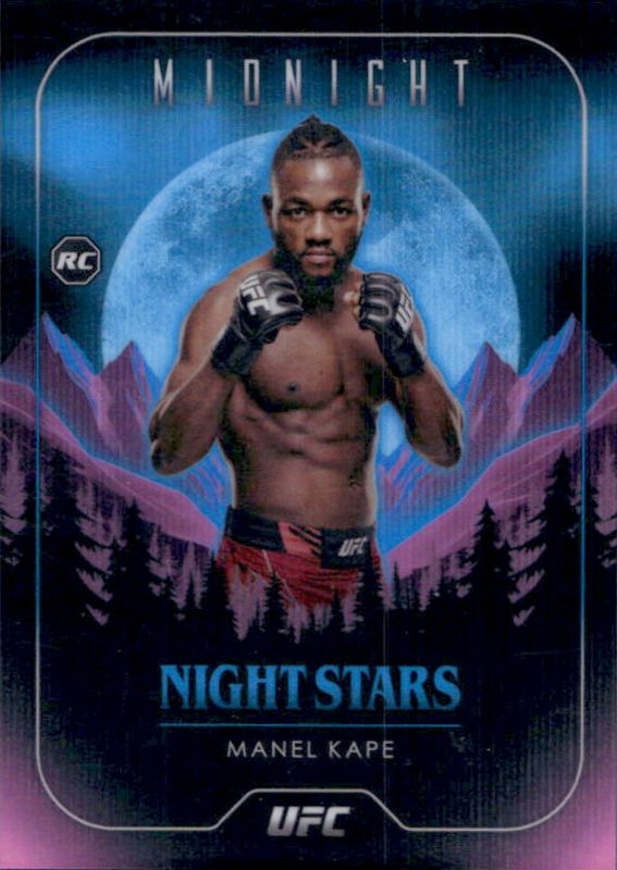 The Manel Kape 2024 Topps Midnight UFC #NS-11 Night Stars Rookie card is 1 of 24 Manel Kape's card variations in the 2024 Topps Midnight UFC set being tracked by Sports Card Investor, including Base, Moon Beam, Morning /125, Twilight /99, and Dusk /75.