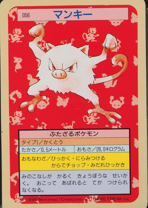 Mankey 1997 Japanese Topsun #056 Green Back (2nd Edition) RAW TCG (MODERATELY PLAYED) Price Guide