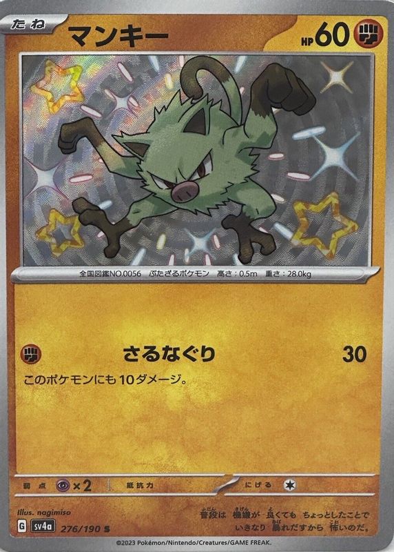 Shiny Mankey 276/190 Near Mint Shiny Treasure ex Japanese Pokemon sv4a 2023