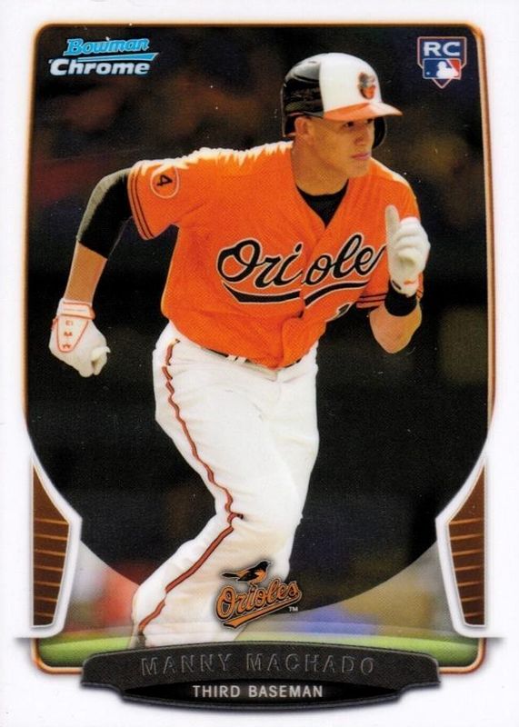 The Manny Machado 2013 Bowman Draft #4 Chrome Rookie card in Raw condition has moved up $2.14 (+108%) in the last 30 days and was last sold for $4.13 .