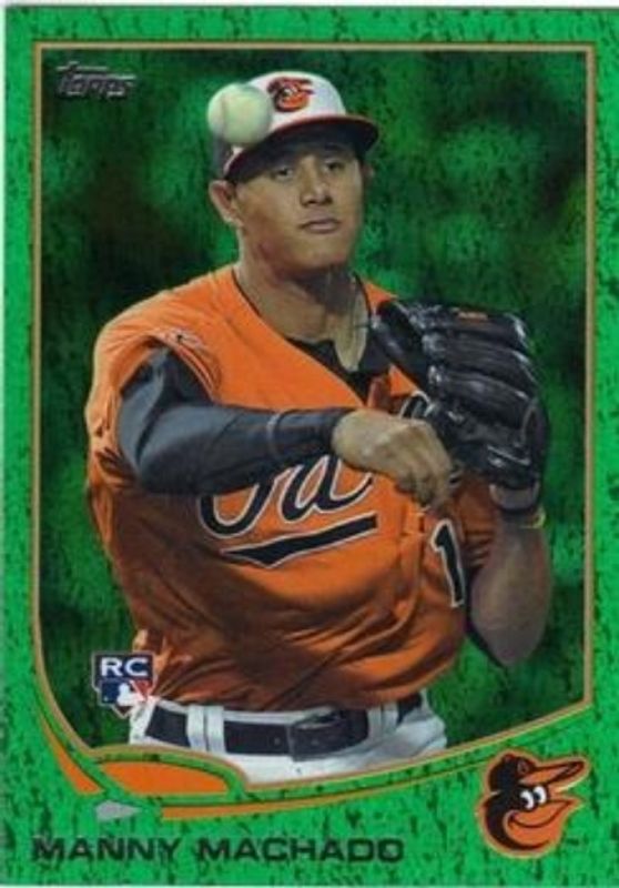 The Manny Machado 2013 Topps #270 Emerald Foil Rookie card is 1 of 55 Manny Machado's card variations in the 2013 Topps set being tracked by Sports Card Investor, including 1972 Topps Minis, Base, Base (Fielding), Chase It Down, and Chasing History.