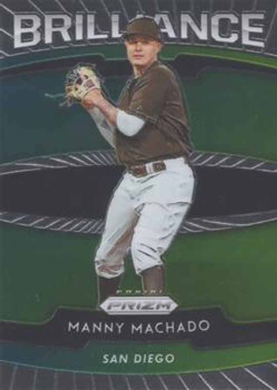The Manny Machado 2020 Prizm #B-9 Brilliance card is 1 of 84 Manny Machado's card variations in the 2020 Prizm set being tracked by Sports Card Investor, including Base, Blue, Carolina Blue, Cosmic Haze, and Green.