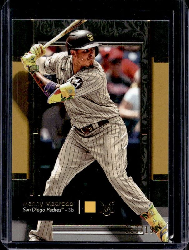 The Manny Machado 2024 Topps Museum Collection #43 Gold /199 card is 1 of 39 Manny Machado's card variations in the 2024 Topps Museum Collection set being tracked by Sports Card Investor, including Base, Copper, Sapphire /150, Amethyst /99, and Ruby /50.