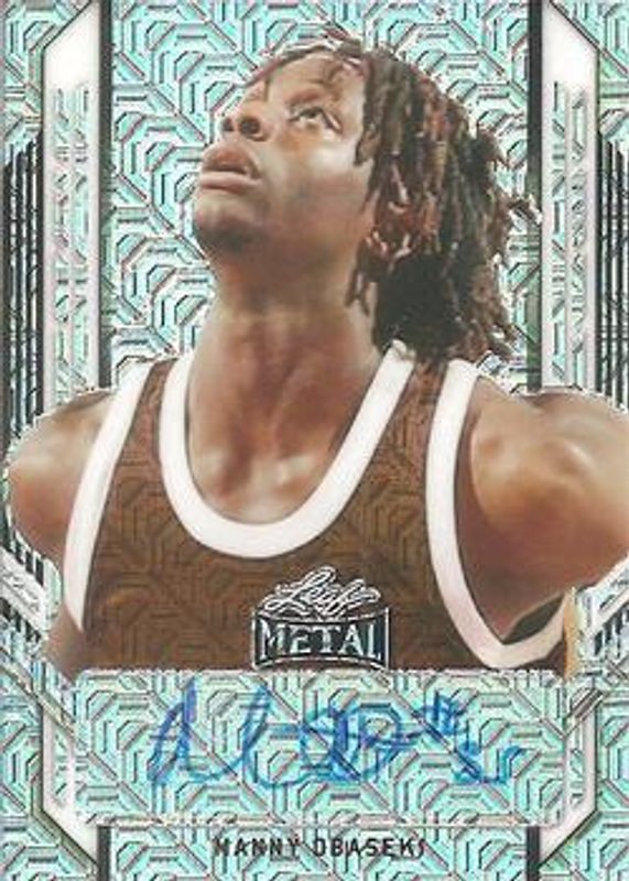 The Manny Obaseki 2021 Leaf Metal #PA-MO1 Portrait Autographs - Silver Mojo card is 1 of 88 Manny Obaseki's card variations in the 2021 Leaf Metal set being tracked by Sports Card Investor, including Base, Silver Crystal, Silver Mojo, Silver Wave, and Blue Rainbow /50.