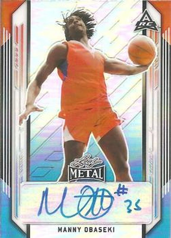 The Manny Obaseki 2021 Leaf Metal #BA-MO1 Red White Blue Rainbow /10 card is 1 of 88 Manny Obaseki's card variations in the 2021 Leaf Metal set being tracked by Sports Card Investor, including Base, Silver Crystal, Silver Mojo, Silver Wave, and Blue Rainbow /50.