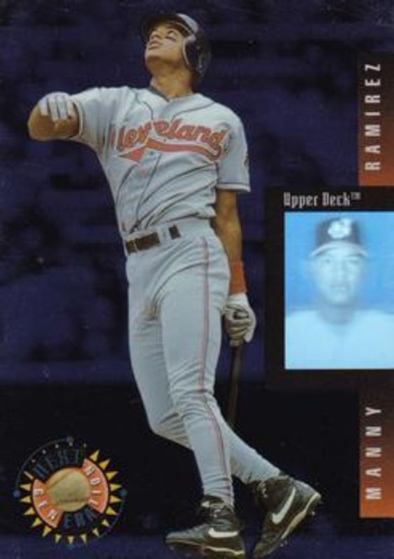 The Manny Ramirez 1994 Upper Deck #15 Next Generation card is 1 of 8 Manny Ramirez's card variations in the 1994 Upper Deck set being tracked by Sports Card Investor, including Base, Electric Diamond, Diamond Collection, Mickey Mantle's Long Shots, and Mickey Mantle's Long Shots - Electric Diamond.