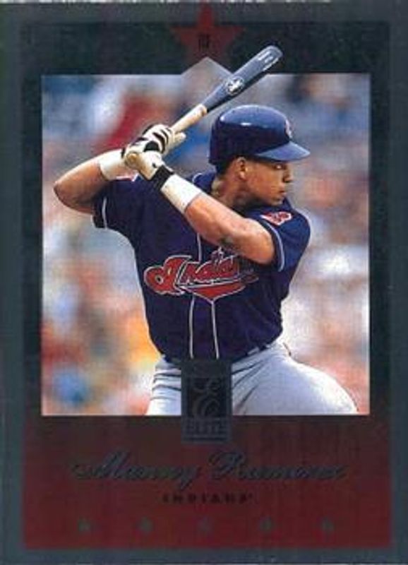 The Manny Ramirez 1997 Donruss Elite #18 Base card is 1 of 3 Manny Ramirez's card variations in the 1997 Donruss Elite set being tracked by Sports Card Investor, including Gold Stars, and Leather & Lumber /500.