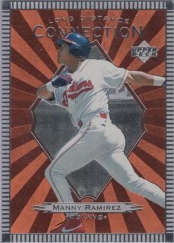 The Manny Ramirez 1997 Upper Deck #LD19 Long Distance Connection card is 1 of 11 Manny Ramirez's card variations in the 1997 Upper Deck set being tracked by Sports Card Investor, including #345 Base, #188 Base, #AG16 Amazing Greats, #HC14 Hot Commodities, and #PP14 Power Package.