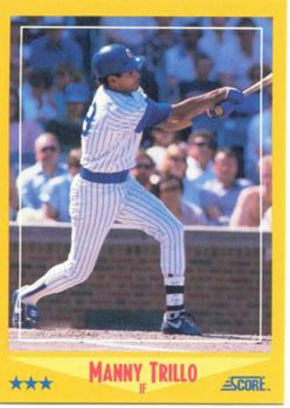 The Manny Trillo 1988 Score #524 Glossy card is 1 of 2 Manny Trillo's card variations in the 1988 Score set being tracked by Sports Card Investor, including Base.