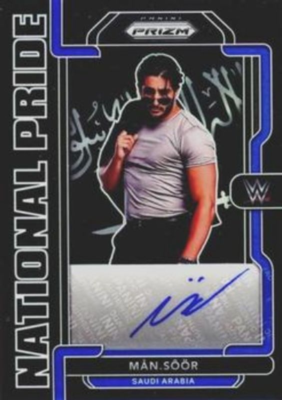 The Mansoor 2022 Chronicles WWE #NP-MSR National Pride Signatures - Black /1 card is 1 of 12 Mansoor's card variations in the 2022 Chronicles WWE set being tracked by Sports Card Investor, including Base /99, Bronze, Red /199, Blue /99, and Purple /49.
