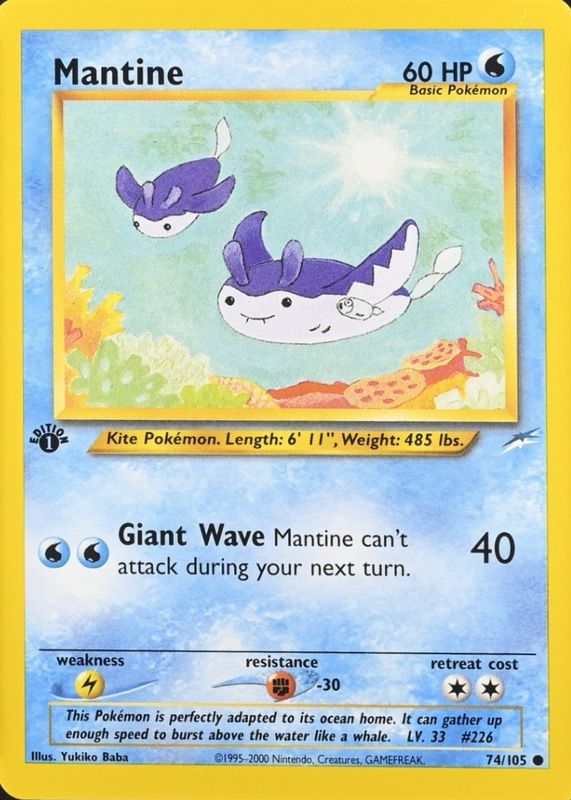 Mantine 74/105 Pokemon TCG 1st Edition Neo Destiny NM Vintage 2002 Card