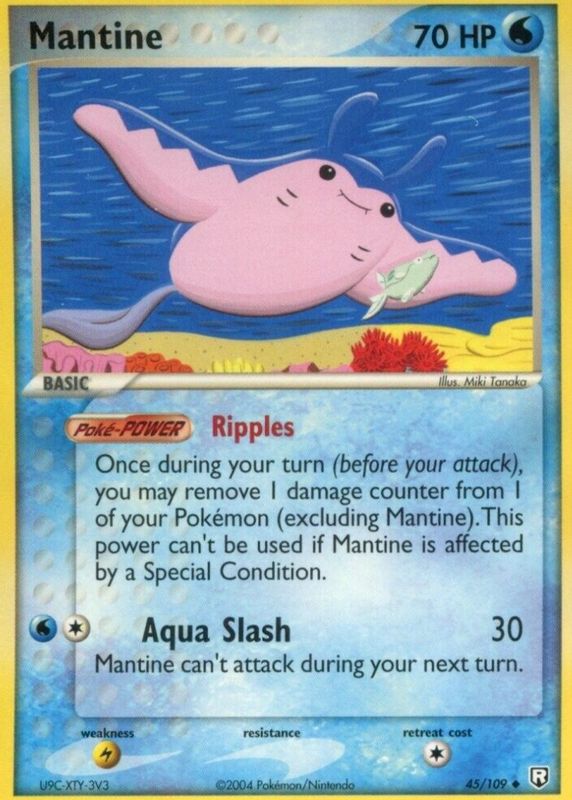 The Mantine 2004 EX: Team Rocket Returns #045/109 Base card in Raw TCG (Near Mint) condition has not changed in price in the last 30 days and was last sold for $2.09 .