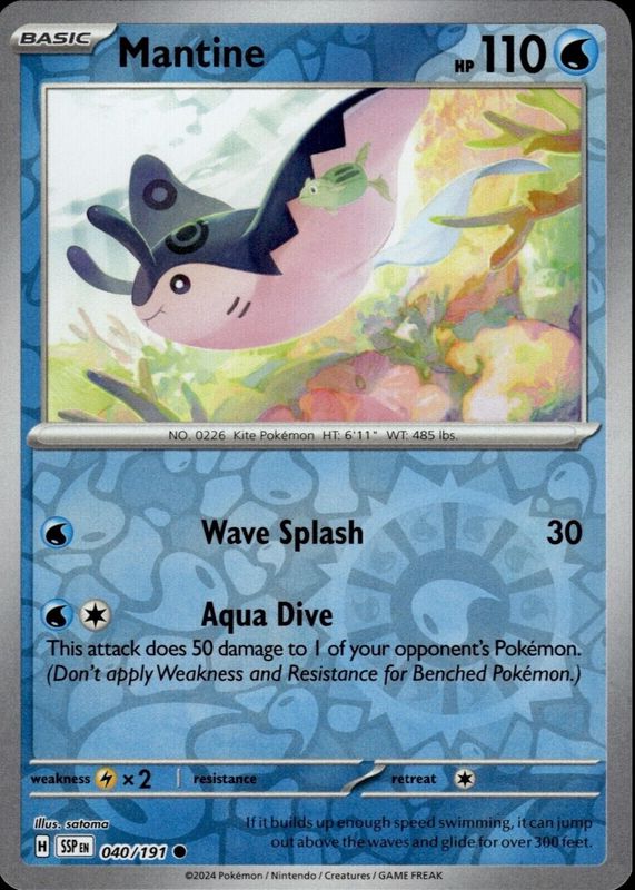 Pokemon TCG Mantine 040/191 2024 Surging Sparks Reverse Holo Common - NM