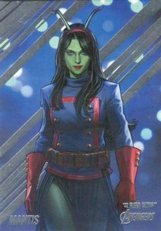 The Mantis 2022 Fleer Ultra Avengers #41 Base card is 1 of 35 Mantis' card variations in the 2022 Fleer Ultra Avengers set being tracked by Sports Card Investor, including Gold Rainbow Foil, Green Foil, Rainbow Foil, Orange Foil /549, and Blue Foil /360.