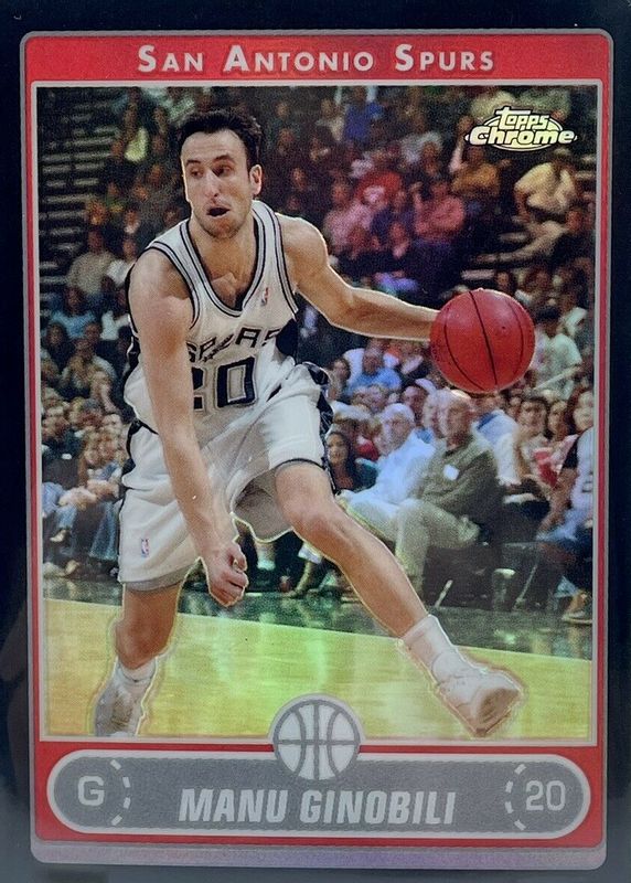 This card is 1 of 10 Manu Ginobili's card variations in the 2006 Topps Chrome set being tracked by Sports Card Investor, including Base, Framed Press Plates Black /1, Framed Press Plates Cyan /1, Framed Press Plates Magenta /1, and Framed Press Plates Yellow /1.