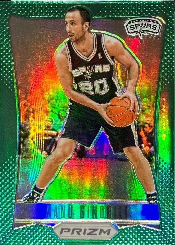 This card is 1 of 8 Manu Ginobili's card variations in the 2012 Prizm set being tracked by Sports Card Investor, including Base, Silver, Gold /10, Finalists, and Finalists - Green.