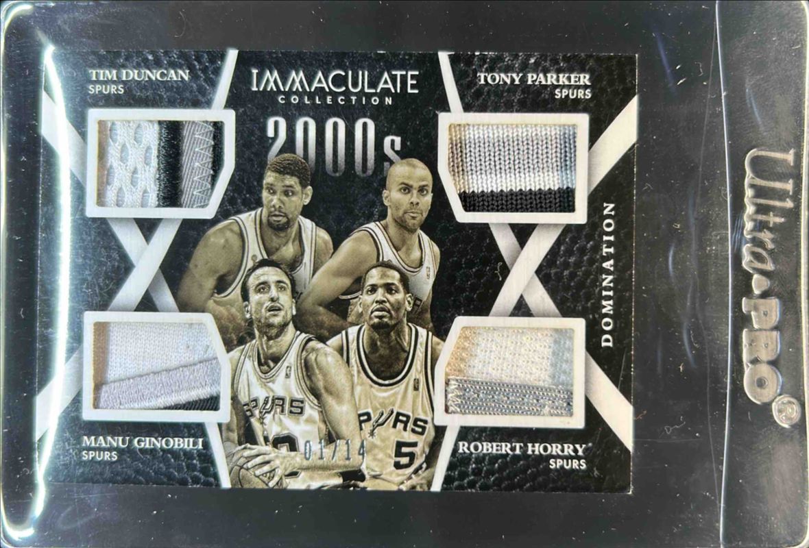 Manu Ginobili / Robert Horry / Tim Duncan / Tony Parker 2014 Immaculate #15 Decade Domination Quads /14 RAW Price Guide