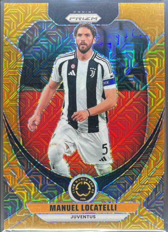The Manuel Locatelli 2025 Prizm Club World Cup #122 Multicolor Mojo /25 card is 1 of 49 Manuel Locatelli's card variations in the 2025 Prizm Club World Cup set being tracked by Sports Card Investor, including Base, Green Ice, Hyper, Ice, and Pandora.