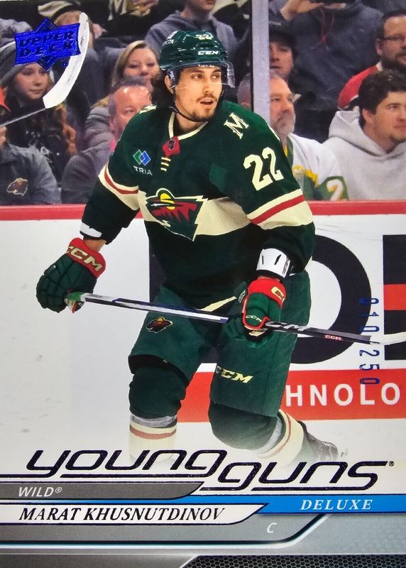 The Marat Khusnutdinov 2024 Upper Deck #243 Young Guns - Deluxe /250 Rookie card in Raw condition has not changed in price in the last 30 days and was last sold for $17.88 .