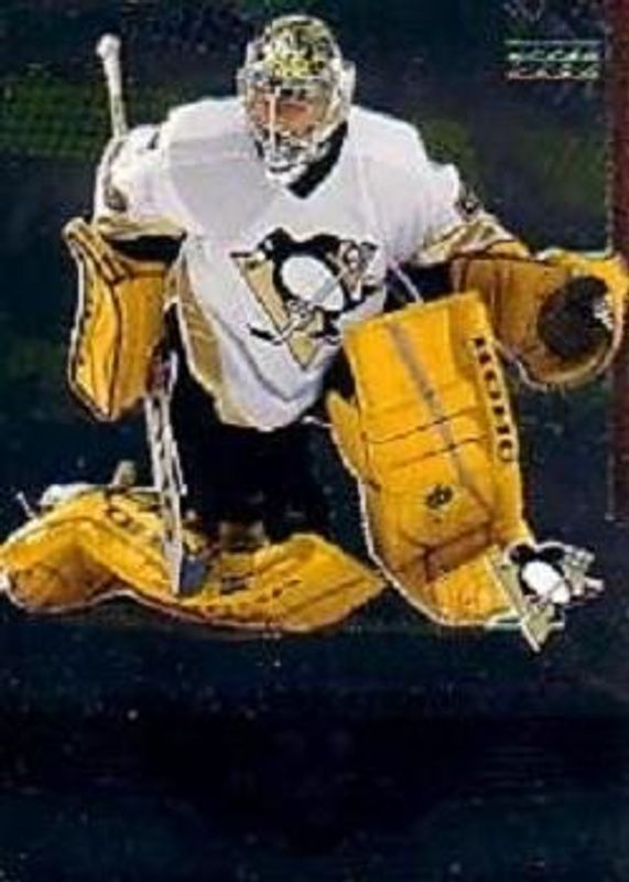 The Marc-Andre Fleury 2005 Upper Deck Black Diamond #110 Base card is 1 of 10 Marc-Andre Fleury's card variations in the 2005 Upper Deck Black Diamond set being tracked by Sports Card Investor, including Ruby /100, Emerald /25, Gold /10, Onyx /1, and Gemography.